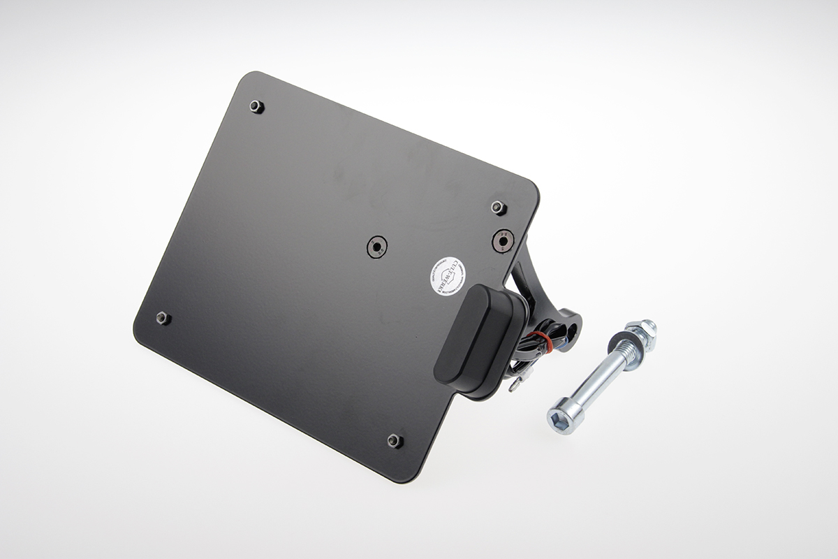 Die Montage ist sehr einfach, der Kennzeichenhalter wird bei der unteren Stoßdämpferbefestigungsschraube mitgeschraubt. Dazu wird eine längere Schraube benötigt, die selbstverständlich im Lieferumfang enthalten ist (Schraube muss bei Bedarf gekürzt werden). Da der Cult-Werk Kennzeichenhalter, im Vergleich zu anderen auf dem Markt erhältlichen Kennzeichenhaltern, einen extra kurzen Befestigungsfuß hat, ist er optisch weit ansprechender!